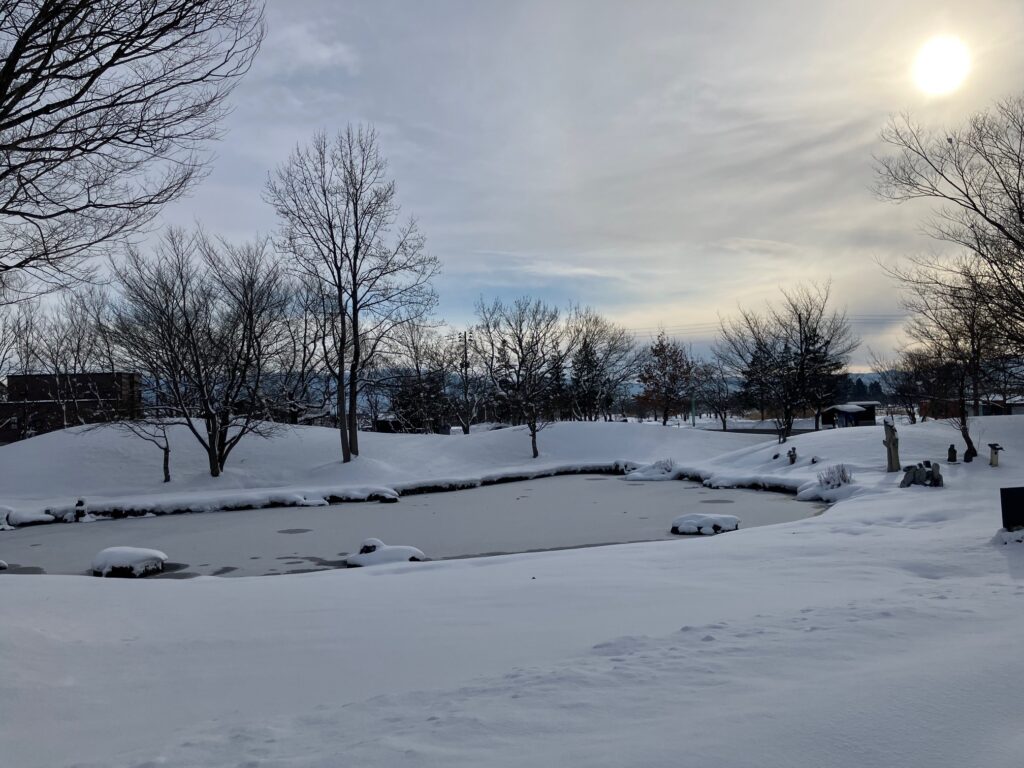令和8年が始まり、浜田広介記念館も6日(火)より通常開館しました。今年は比較的穏やかな天気に恵まれ、記念館の周囲も雪化粧し、幻想的な風景になっています。