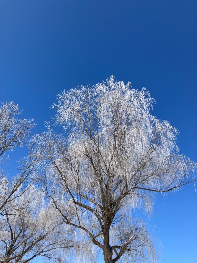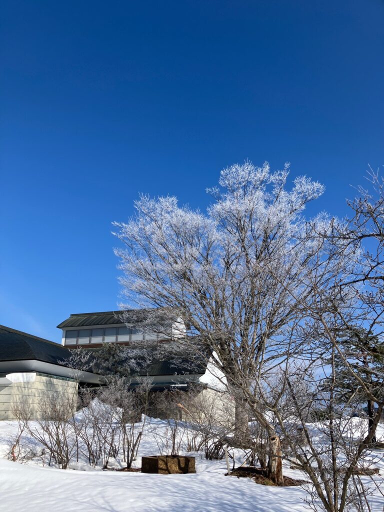 今日からの三連休 開館しています 本日2月21日(土)から三連休、浜田広介記念館は3日間開館しています。どうぞ休日のひと時を童話の世界に浸り、心をリフレッシュさせてください。お待ちしております。 今朝は快晴、放射冷却で気温はマイナス8度程度でした。おかげで記念館の前庭は美しい「霧氷」で木々に花が咲いたようでした。